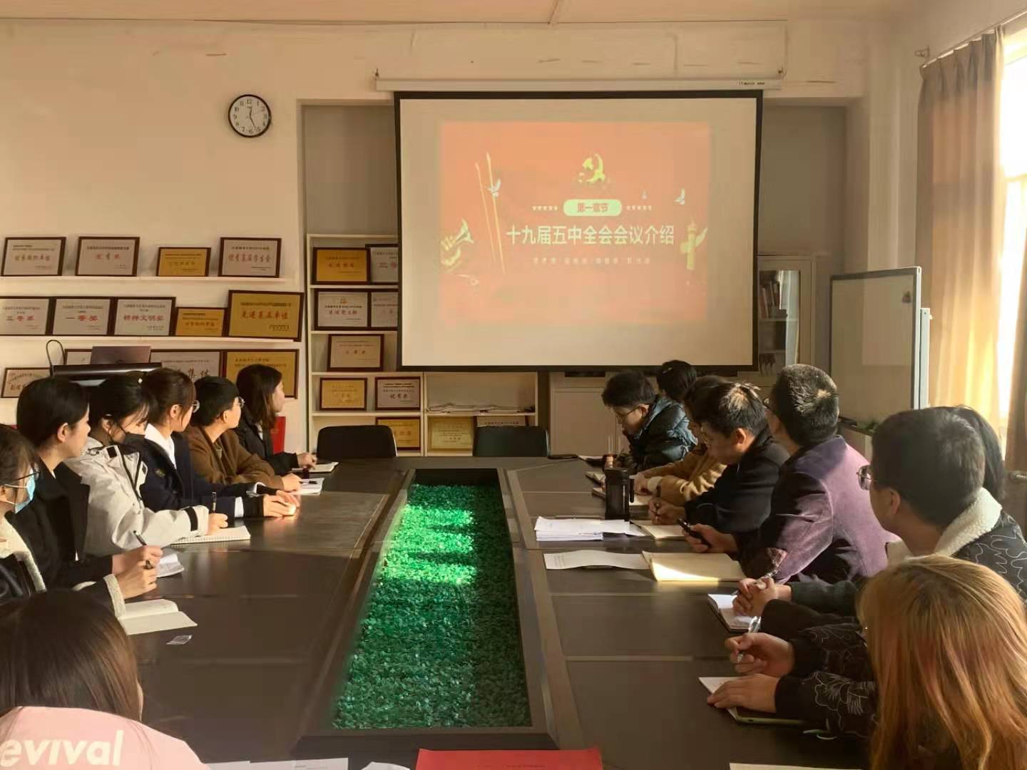12月9日,学院党总支副书记武家春在党员活动室讲授学习贯彻党的十九届五中全会精神专题党课,本科生党支部全体党员参加学习。