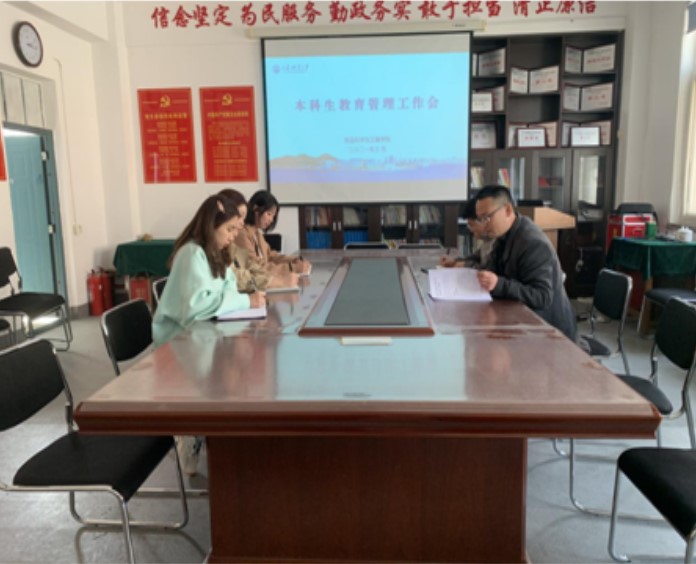 3月19日下午,我院在会议室召开2021年春季学期本科生教育管理工作会。党总支副书记武家春出席并主持会议,团委书记唐珏、辅导员闵元鹤、李晓丹参加会议。