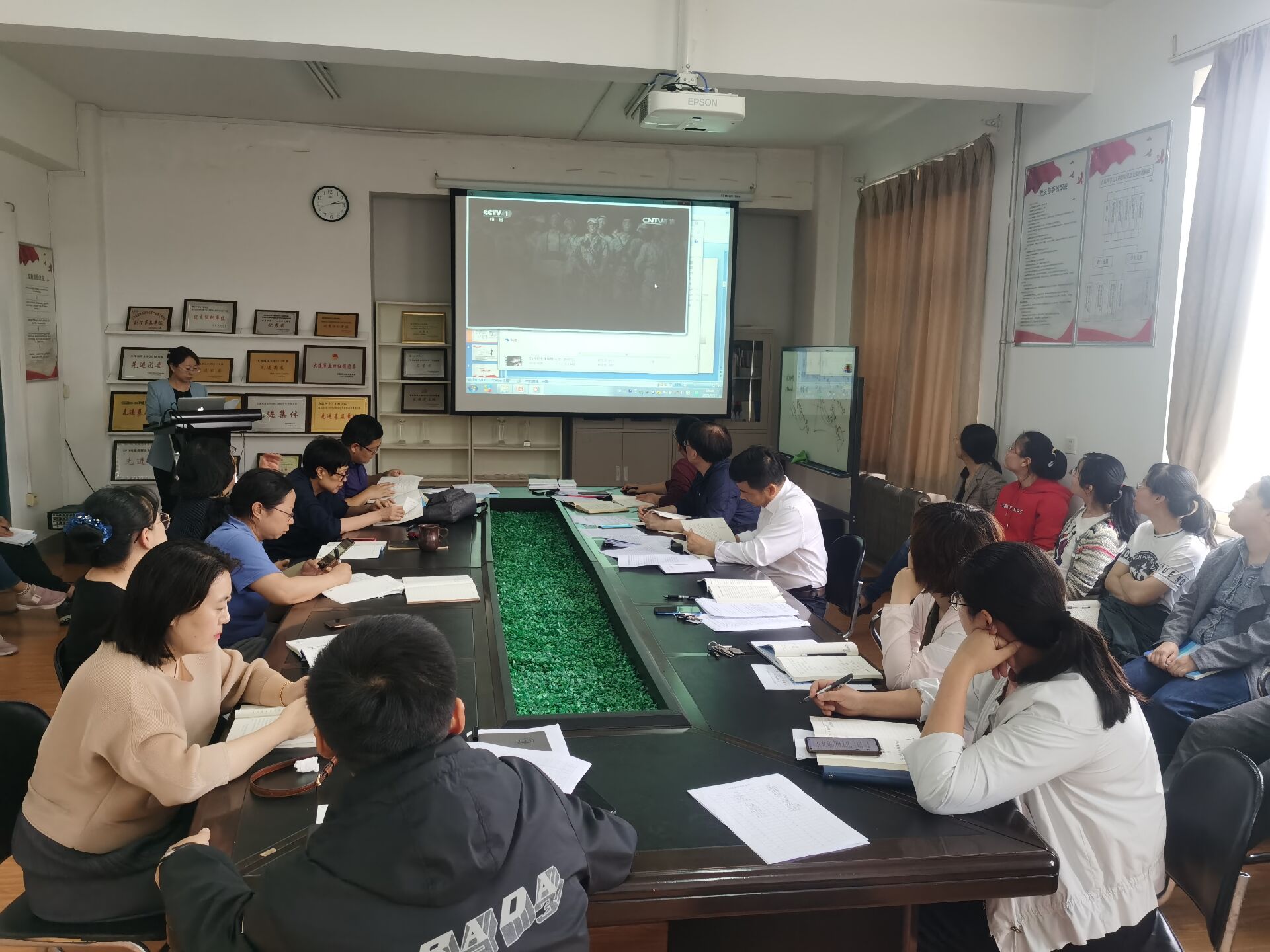 高璐璐以“追忆长征故事 赓续长征精神”为主题,从“品长征诗词、看长征数据、听长征故事、续长征精神”四个方面进行讲述。结合师德专项教育,指出教育工作者要续写长征路 ,必须全面贯彻习近平总书记关于教育的重要论述和全国教育大会精神 ,深入落实《中共中央 国务院关于全面深化新时代教师队伍建设改革的意见》,弘扬高尚师德,潜心立德树人,以赤诚之心、奉献之心、仁爱之心投身教育事业。