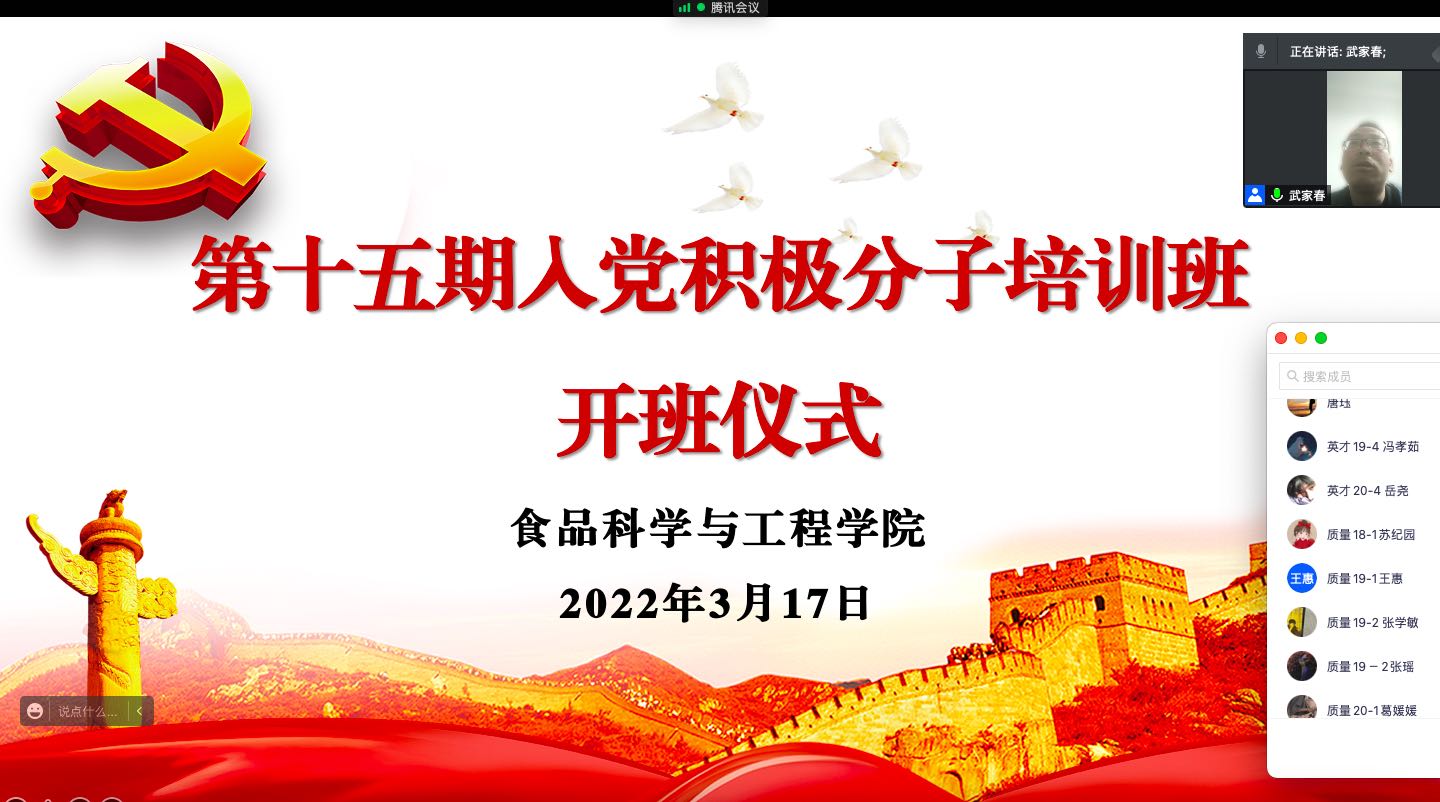 3月17日,williamhill党校分校召开了第十五期入党积极分子培训班线上开班仪式。学院党总支副书记武家春、本科生党支部书记唐珏及第十五期入党积极分子参加仪式。开班仪式由组织员田源主持。