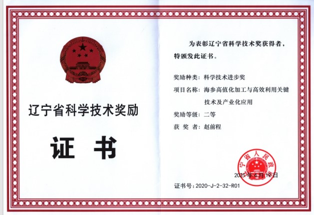 赵前程主要从事海参和贝类精深加工技术与产品开发,近10年,承担科技部国家重点研发计划专项、国家海洋公益性行业科研专项、国家科技支撑计划、辽宁省重大项目课题(任务)及省市科技项目近30项,企业技术开发项目10余项,获授权并转让发明专利7项,发表论文80余篇,在Food Chemistry、Food Research International顶级期刊等SCI和EI收录论文30余篇,主编《海参的营养与精深加工技术》,副主编《海洋生物活性肽的研究与产业化》,参编《Marine Proteins and Peptides: Biological Activities and Applications》、参编“十三五”规划教材《水产品加工学》参编中文教材2部,主持水产行业标准1项。主持“海参高值化加工与高效利用关键技术及产业化应用”和“特色贝类高值化加工利用关键技术与产业化”分别获得辽宁省科技进步二等奖,主持“海参高质化加工关键技术”获大连科技进步二等奖,作为完成人获得辽宁省科技奖3项,大连市科技奖1项,为我省海参及特色贝类产业发展作出突出贡献。