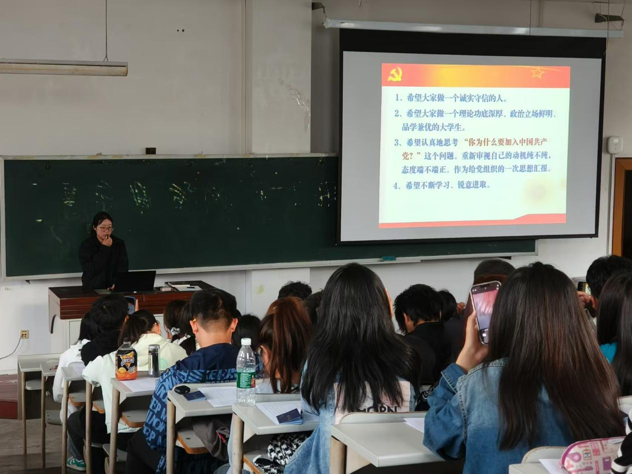 会上,李晓丹通过对中国共产党党史的详细讲解,让同学们对党的性质、宗旨、原则及党领导中国人民所取得的伟大成就有了更深刻的认识。随后,李晓丹详细地讲述了入团及入党流程,并对如何撰写入党申请书进行了指导。她希望同学们端正入党动机,关心国家大事,在学习生活中努力奋进,积极向党组织靠拢,早日加入到党员的行列。