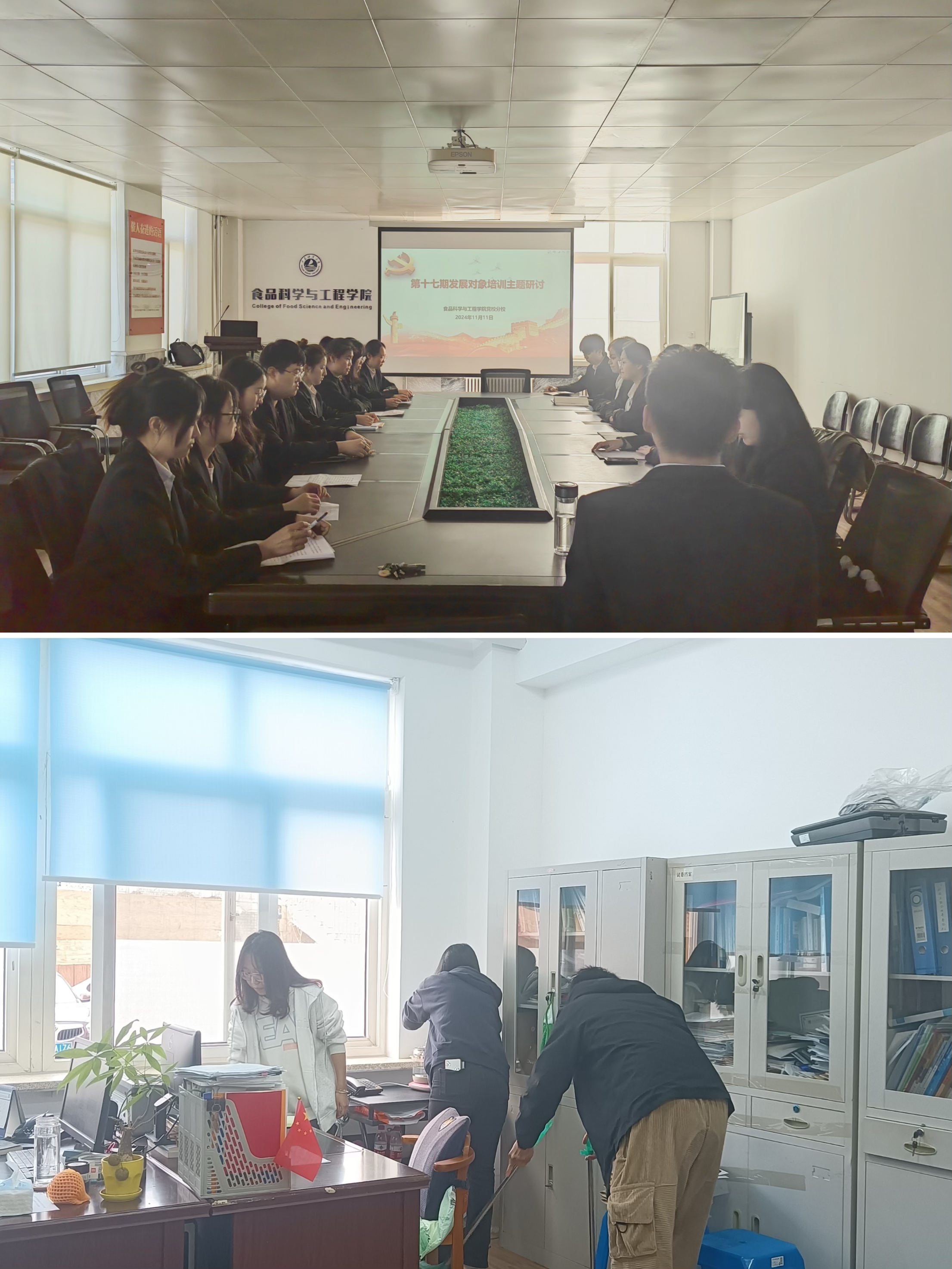 研讨会上,发展对象围绕“感受信仰力量,赓续奋斗之志”开展主题学习研讨,通过分享自己的所学所感,交流学习感悟。实践服务中,对学院会议室、办公室等进行全方位、零死角的大扫除并对安全隐患进行全面排查。