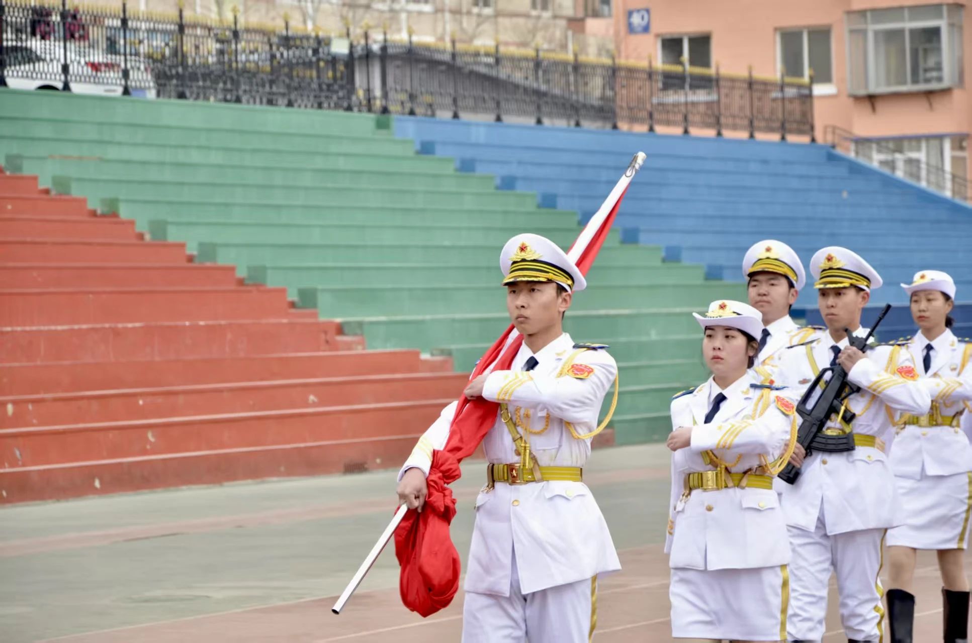 随着《义勇军进行曲》奏响,国旗班护送着国旗稳步迈向升旗台,全场师生的目光紧紧追随,眼神中饱含敬意与期待。升旗手身姿挺拔,振臂一挥,国旗如同一只展翅欲飞的雄鹰,向着蓝天腾空而起。在澄澈蓝天的映衬下,鲜艳的色彩越发夺目,召唤着新一代海大学子肩负起海洋强国的历史使命。