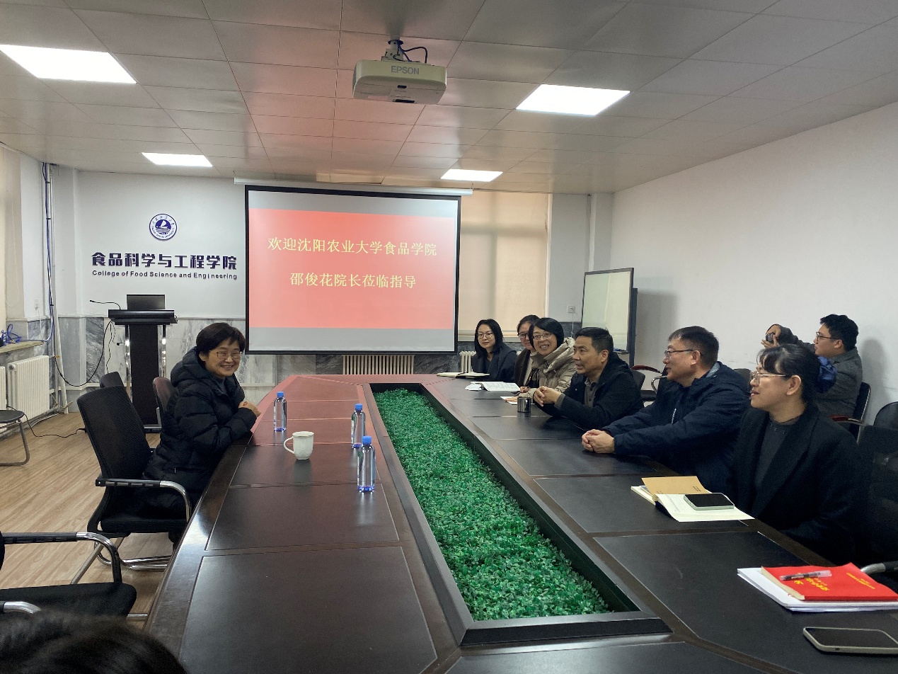12月10日,沈阳农业大学食品学院院长邵俊花教授应邀来访我院进行学术交流。学院相关领导、学科带头人、科研团队负责人及青年教师代表参加座谈交流。