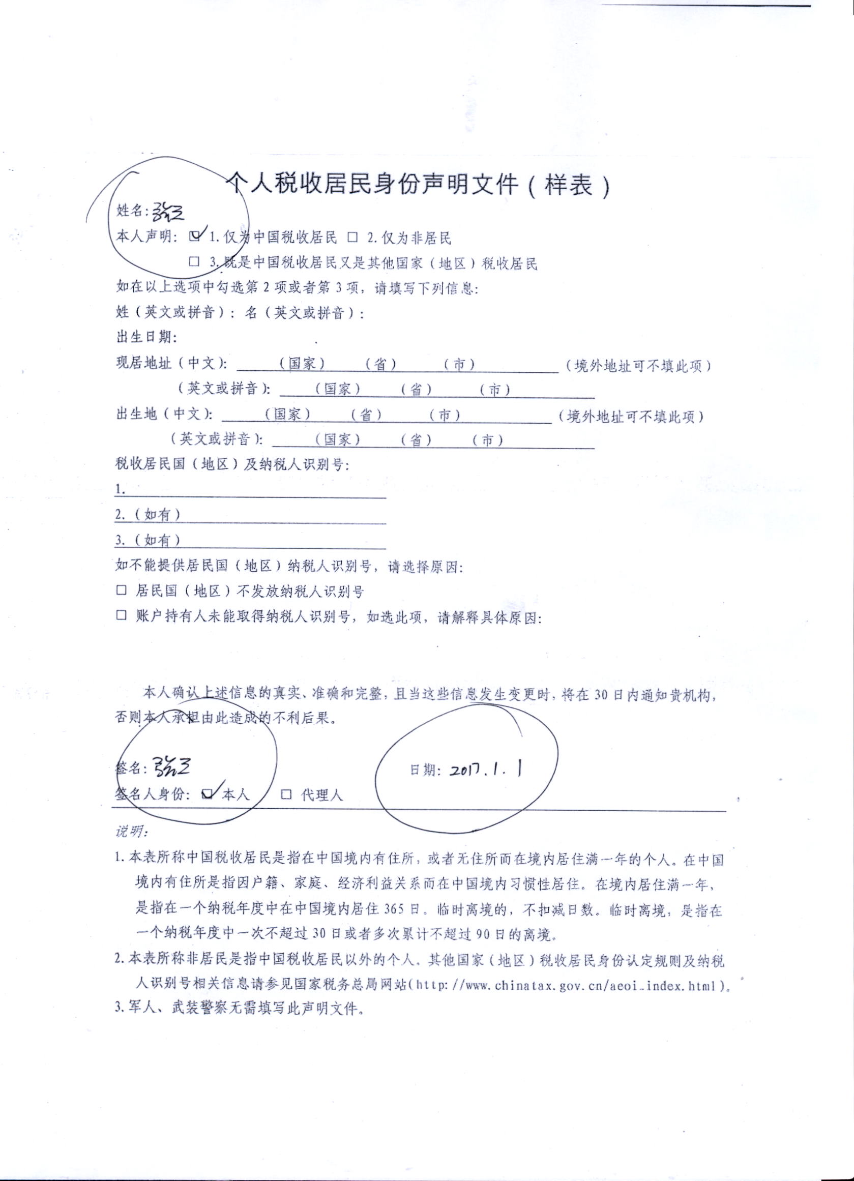 附件2-1:个人税收居民身份声明文件填写样本.jpg