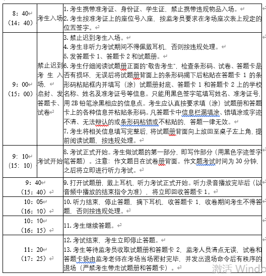 8.英语考试流程(上午时间为四级,下午时间为六级):