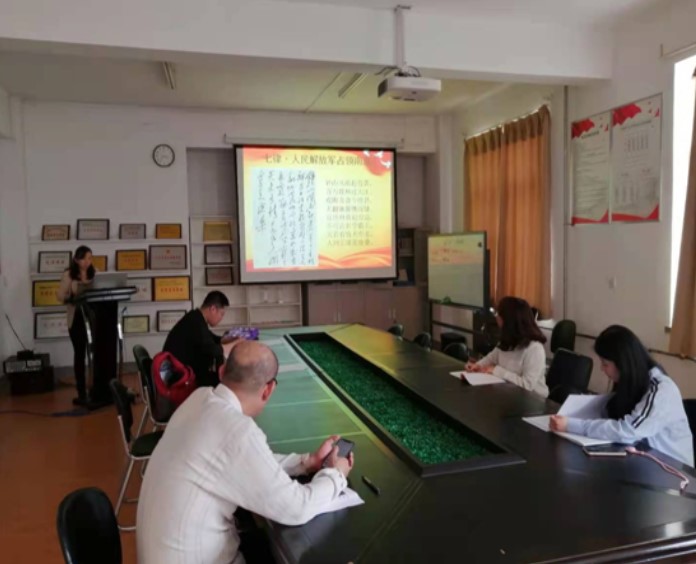 海洋资源开发技术教研室党支部于6月11日开展了“红色诗词学党史系列”专题党课活动。支部书记曲敏以《七律•人民解放军占领南京》为题,为支部全体党员上了一堂生动的党课,她从背景介绍、译文及写作风格、艺术赏析等方面详细讲解了诗词。