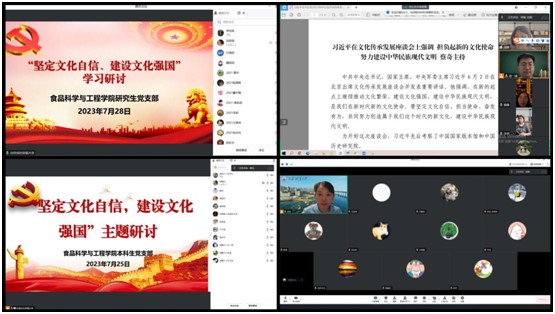 7月22日-28日,williamhill党总支各党支部围绕“坚定文化自信、建设文化强国”开展线上学习研讨,会议由各党支部书记主持。
