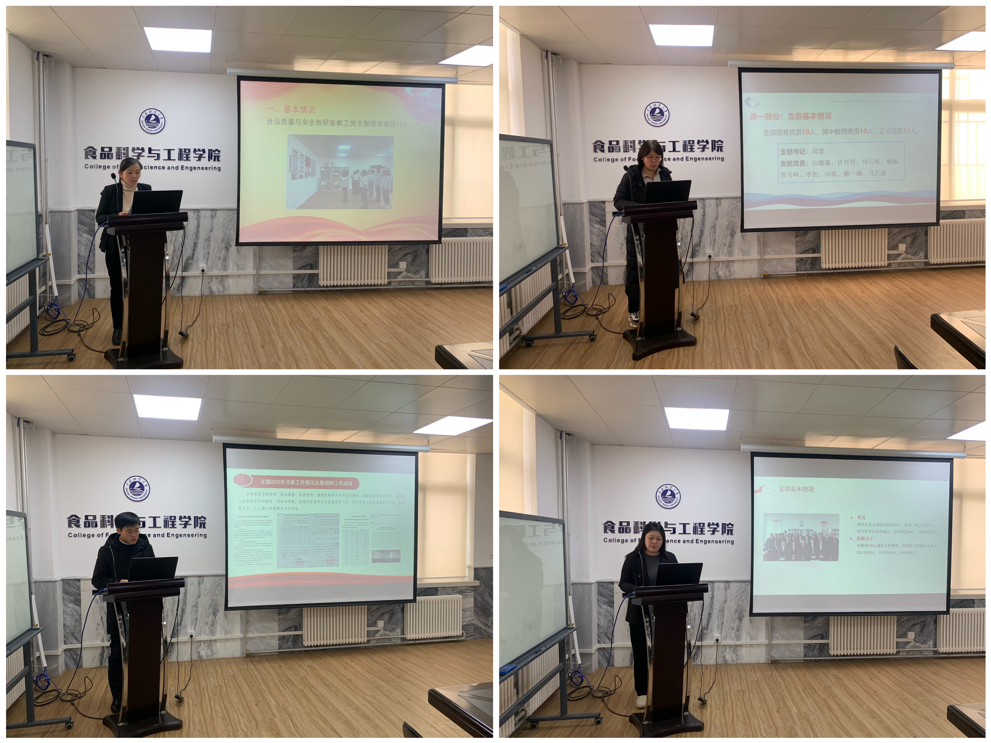 会上,食品科学与工程教研室党支部、食品质量与安全教研室党支部、研究生党支部和本科生党支部共4名党支部书记围绕全年党建工作开展的情况、取得的成效和存在的问题、下一步工作思路进行现场述职。