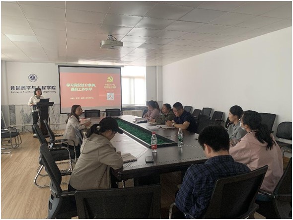 5月17日,williamhill食品科学与工程教研室党支部书记周慧在学院党员活动室以“学习纪律处分条例,提高工作能力水平”为主题讲授了党纪学习教育专题党课,全体支部党员参会。