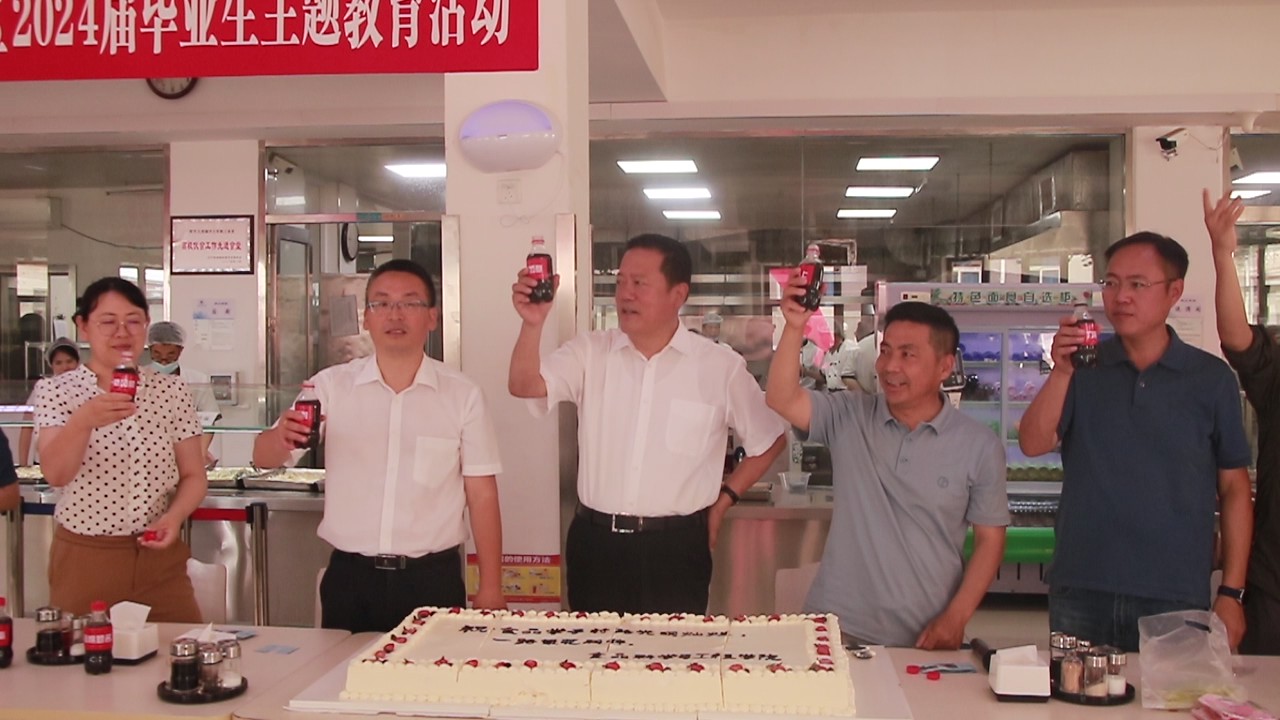 活动中,衣庆焘、赵前程、武家春共同分切蛋糕,在这个美好的时刻,将这份甜蜜传递给每一位即将毕业的同学。大家共同举杯,祝福他们梦想熠熠,未来可期!学弟学妹们为毕业生深情演唱《离别开出花》《花开忘忧》等歌曲,祝福毕业生前路光明灿烂,一路繁花相伴。