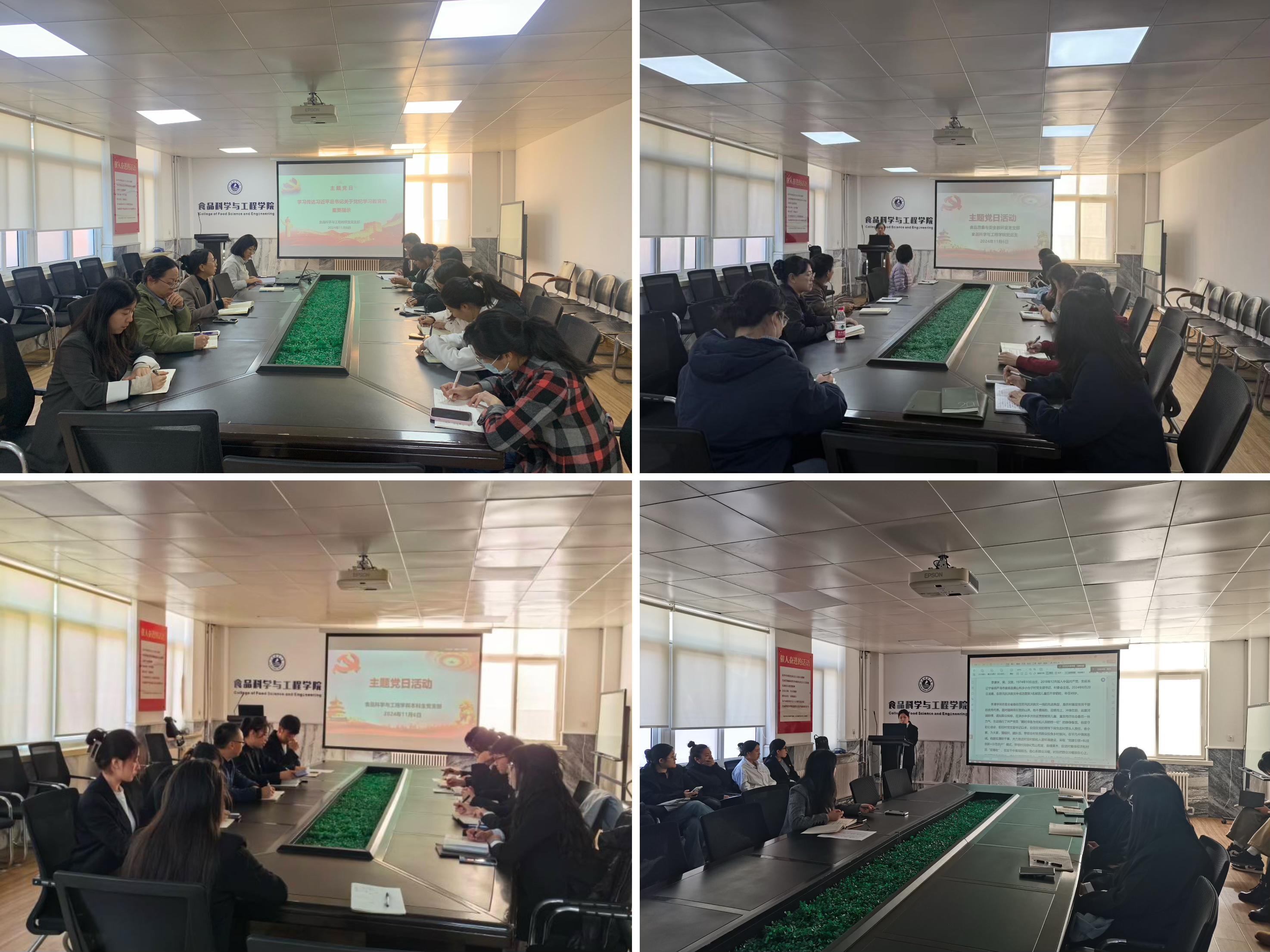 会上,各党支部以“第一议题”形式,集中学习传达习近平总书记关于党纪学习教育的重要指示、习近平总书记给中国海洋大学全体师生回信精神、习近平总书记给中国国际大学生创新大赛参赛学生代表的回信精神、全省科技大会精神。各党支部组织集中学习习近平总书记重要讲话和全国教育大会精神,并围绕习近平同志《论教育》,带领全体党员读原著、学原文、悟原理知原义,开展“弘扬教育家精神,勇担新时代使命”专题研讨学习。各党支部组织全体党员学习中共辽宁省委关于追授李清学同志“辽宁省优秀共产党员”称号并开展向李清学同志学习的决定文件,并开展学习研讨。全体党员集中观看2024年高校党组织示范微党课第9讲《矢志蔚蓝 勇担使命 奋力书写海洋强国,高校有为的崭新篇章》,布置自学观看第8讲《为农业强国建设贡献教育力量》。