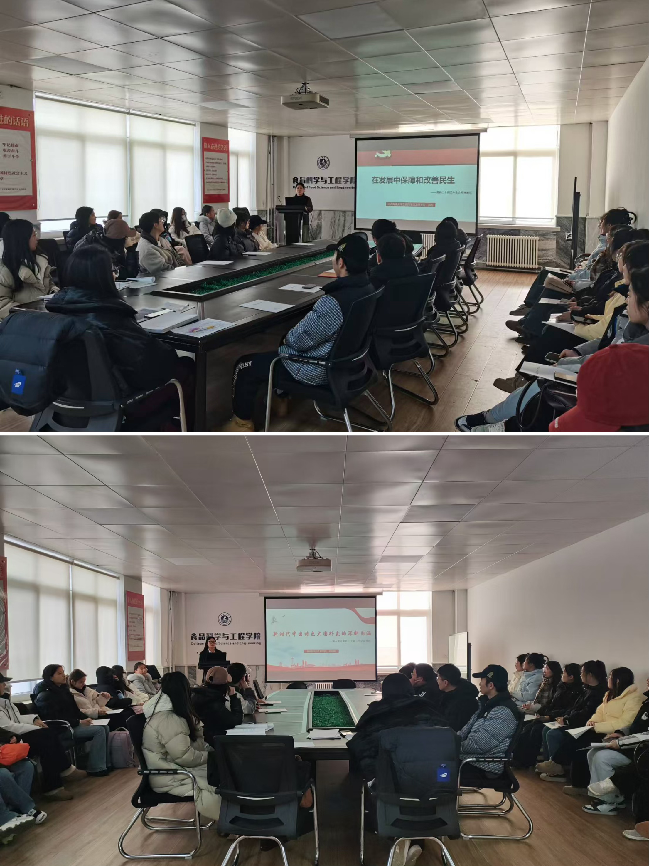 刘思琪以“新时代中国特色大国外交的深刻内涵”为题,从坚持党的集中统一领导、实现中华民族伟大复兴、推动构建人类命运共同体、“一带一路”、坚持走和平发展道路这五个方面解读了中国特色大国外交的深刻内涵以及对国内和国际影响力。高月以“在发展中保障和改善民生”为题,从民生建设取得的历史性成就、保障和改善民生应坚持的原则和制度体系的任务要求三个方面全面解释了抓改革、促发展,归根到底就是为了让人民过上更好生活。