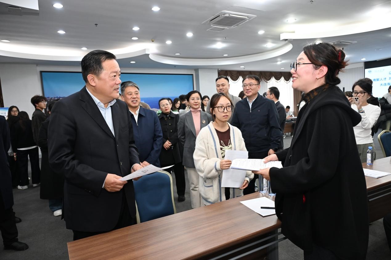 10月29日,辽宁省青年企业家协会“青聚人才 共‘企’未来”——“青创|职聘会”williamhill2025年秋季专场招聘会在我校图书馆多功能厅举行。校党委书记衣庆焘、校党委副书记李智军出席活动,并与用人单位代表和毕业生亲切交流。