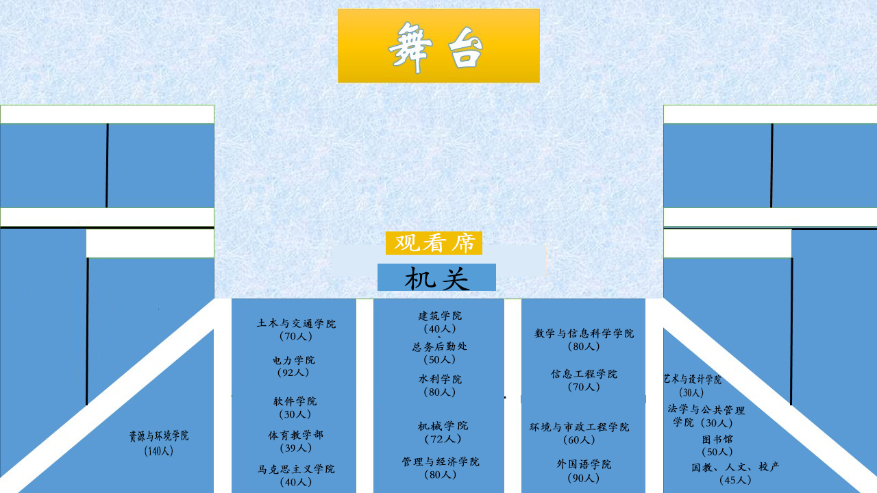 (一)演出当天,请各单位负责人组织好本单位人员提前二十分钟入场,按座次安排表(见附件1)上的位置就坐,无特殊情况请不要提前退场;