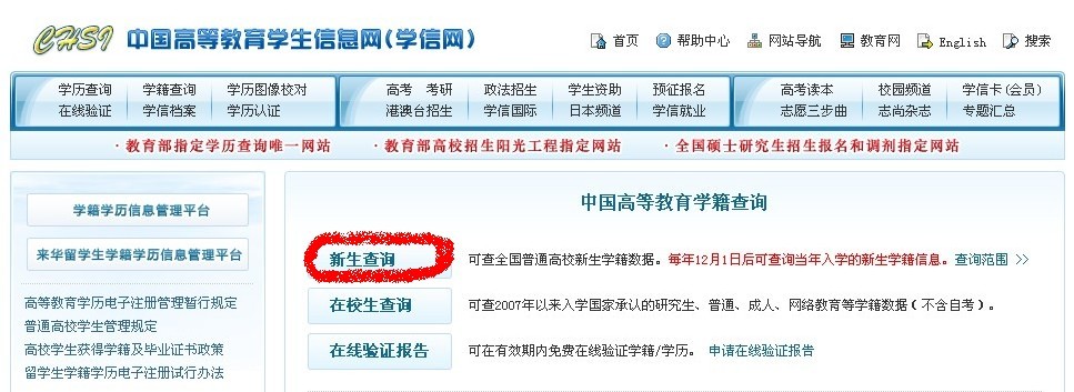 1、登陆中国高等教育学生信息网http://www.chsi.com.cn。点击“学籍查询”。