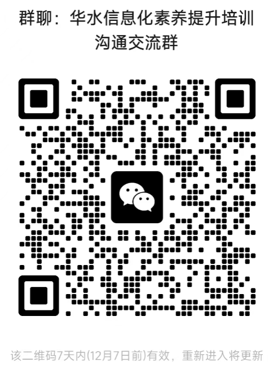 培训采取线上线下结合的方式进行,教师可根据自己实际情况选择参加,请各位参加培训的老师扫描交流群二维码入群,并在12月5日前扫描对应培训二维码进行线上报名,线下培训地址、具体时间及线上会议号将在交流群中通知。